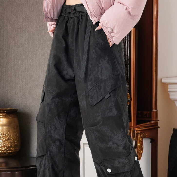 ダウン入りカーゴパンツ、冬用ロングパンツ、90% ホワイトダックダウン、スタイリッシュ、防風、防水、迷彩柄、厚みがあり、自己発熱、関節を保護するグラフェン膝パッド、ユニセックス、寒い天候でのハイキング